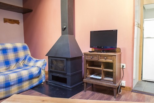 Apartamento para hasta 6 personas, con chimenea, cocina equipada, baño completo y aseo, calefacción, y servicios para mascotas y bicicletas.